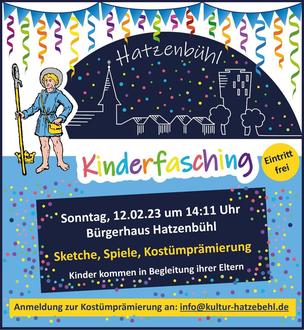 Am 12.02.23 lädt die KGH 2021 e.V. in den Großen Saal des Bürgerhauses Hatzenbühl zum Kinderfasching. Für unsere Kinder haben wir ein abwechslungsreiches närrisches Programm zusammengestellt. Der Eintritt ist wie immer frei!