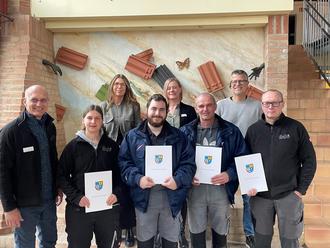 Bild hinten v.l.n.r.: Annette Cölln (stv. Gleichstellungsbeauftragte), Sibylle Glittenberg (Personalreferentin), Tobias Völkel (Werkleiter und Bauabteilungsleiter)