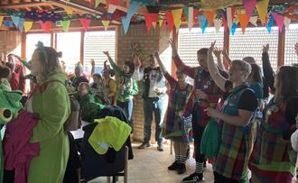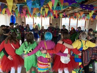 Zum Abschluss tanzten die Fasenachter bunt gemischt im Kreis zu dem Beatles-Lied „Hey Jude“: Na na na nananana, nananana, helau!
