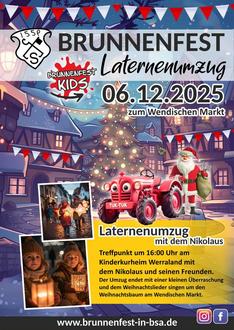 Am 6. Dezember ist es wieder soweit: Ab 16 Uhr zieht der Nikolaus durch die Söder Straßen. Wir laden alle Familien herzlich ein, ihn gemeinsam mit dem Brunnenfestausschuss und einem stimmungsvollen Laternenumzug von der Klinik Werraland bis zum großen Weihnachtsbaum am Wendischen Markt zu begleiten. Dort wartet auf jedes Kind eine kleine Überraschung vom Nikolaus.