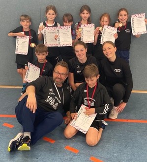 Der KiLa -Wettkampf in der Langenberghalle von Baunatal/ Grossenritte war der erste Wettkampf für das Mini-Leichtathletikteam in der U10 vom SSC Bad Sooden-Allendorf. Mit viel Spass und Ehrgeiz ging das "Team Cobra Kids" mit 8 Kindern gegen 9 weitere Teams aus Nordhessen an den Start. Nach einem sehr guten Sprintergebnis folgte leider ein ziemlicher Leistungseinbruch bei den Weitsprungleistungen, der auch durch die Ergebnisse im Medizinballstoß nicht mehr ausgeglichen werden konnte. So belegten die Kinder, betreut von den Trainern Witold Wozniak, Maja Ruelberg und Tjorven Böttigheimer am Ende mit 27 Rangpunkten einen guten 6. Platz. "Immerhin zwei Plätze besser, als im letzten Jahr", so der Kommentar vom zufriedenen Trainerteam.
