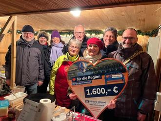 Auf dem diesjährigen Weihnachtsmarkt erfolgte nun die offizielle Spendenübergabe am Crepes-Stand durch Uwe Linnekohl ( Vorstand der VR-Bank).