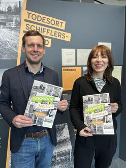 Museumsleiter Dr. Christian Stöber und Mitarbeiterin Madlen Beckmann mit dem neu erschienenen Magazin zur Neugestaltung des Grenzmuseums Schifflersgrund