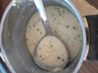 Zutaten : Gemüsebrühe, Suppengrün, frische Erbsen (ggf. tiefgefroren);