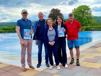 (von links) Christian Knolle, Stiftung, Torsten Stöber, Anneliese Driehorst, Maja Weidner, alle Sozialkreis BSA e.V., Bademeister Hans-Jörg Müller
