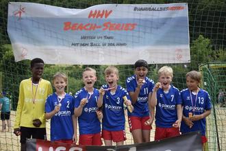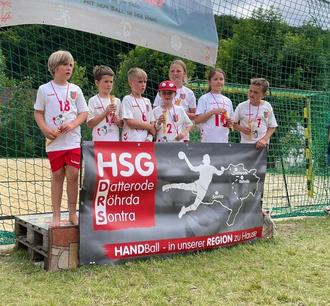 Die E-Jugend spielte mit zwei gemischten Mannschaften beim Turnier mit. Am Ende belegten die Teams der TSG den zweiten und dritten Tabellenplatz hinter den Gastgebern der HSG Datterode/Röhrda/Sontra. Bei bestem Wetter stand vor allem der Spaß im Spiel auf Sand im Vordergrund. Bei der Siegerehrung nahmen alle Teams die vom Hessischen Handball-Verband gesponserten Siegermedaillen voller Stolz entgegen.
