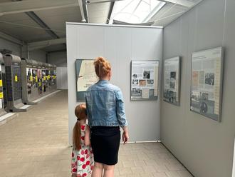 Besucher besichtigen die neue Sonderausstellung in der Veranstaltungshalle des Grenzmuseums Schifflersgrund (Foto: Madlen Beckmann, Grenzmuseum Schifflersgrund)