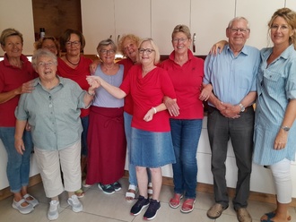 (Foto, v.l.: Helga Heins, Ursel Lange; Andrea Rau, Rita Hüge, Annerose Wernicke, Brunhilde v. Velsen, Barbara Wiegand, Renate Bölling, Werner Lange, Alexandra Kobusch – alle wie immer gut gelaunt bei der Arbeit)