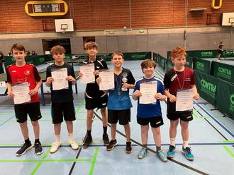 Mit insgesamt sechs Startern waren wir bei den Jungen 15 am zahlreichsten vertreten. Ben Winkler, Tom Becker und Jan Kretschmar sammelten Erfahrung bei ihrem ersten Start in dieser Konkurrenz, Ben und Tom konnten dabei jeweils ein Spiel gewinnen. Viel Pech hatte Jannis Schüler, er gewann zwar von seinen fünf Vorrundenspielen vier und konnte dabei auch den deutlich höher eingestuften und späteren vierten Joscha Stieff schlagen, schied dann jedoch aufgrund des schlechteren Satzverhältnis aus.