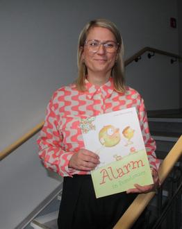 Landrätin Nicole Rathgeber mit einem Exemplar von „Alarm in Pomolonien“