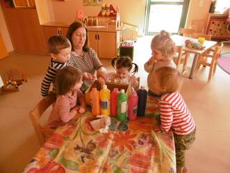 Die Krippenkinder sind fleißig am Basteln, Singen, Turnen und Bücher anschauen.