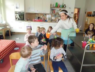 Zuvor hatten wir das Thema Australien im Kindergarten behandelt. Es wurden Lieder gehört & gesungen, einige Kinder bekamen ein kleines „Konzert“ von einem Kita Papa, welcher auf einem echten Digeridoo spielte, bastelten Koalas & Kängurus und bereiteten uns auf unsere Safari vor. Die Kinder bemalten ihre eigenen Ferngläser, welche für solch eine Tour natürlich unentbehrlich sind.