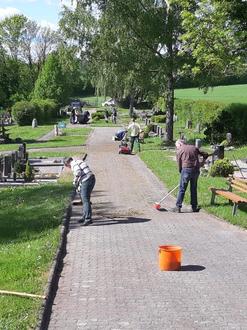 Unter dem Motto „Gemeinsam im Einsatz für den Friedhof“ waren 21 Helferinnen und Helfer der Einladung des Friedhofsausschusses gefolgt. Durch das beherzte Zugreifen aller Beteiligten konnten alle Wege und Freiflächen gepflegt und in guten Zustand versetzt werden. Schadhafte Stellen wurden repariert. Alle Wege wurden aktiviert.