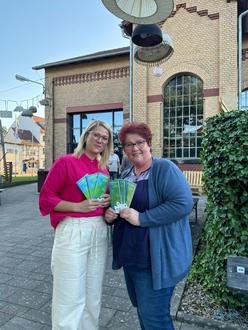Landrätin Nicole Rathgeber und Kulturbeauftragte Sylvia Weinert präsentieren die druckfrisch eingetroffene Kultursommer-Broschüre für den Werra-Meißner-Kreis.