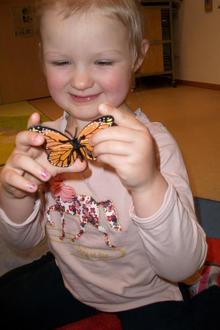 Wer hätte gedacht, dass Schmetterlinge mit ihren Fühlern riechen und schmecken können? Dies und weitere spannende Fakten erschließen sich die Kinder gemeinsam mit ihren Erziehern in den Morgenkreisen und Angeboten. Zudem stehen ihnen jederzeit Bücher Wissensbücher zur Verfügung, um ihren Interessen selbstbestimmt nachgehen zu können.