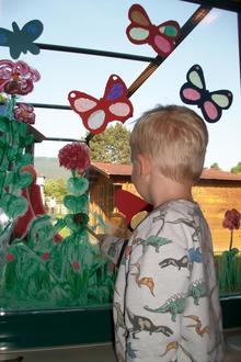 Auch draußen können wir eine Vielzahl von Schmetterlingen beobachten, sehen gelegentlich sogar Raupen. Diese Lebensnähe macht unser Thema für die Kinder viel mehr greif- und begreifbar wo auch der Spaß und die Faszination nicht zu kurz kommen.