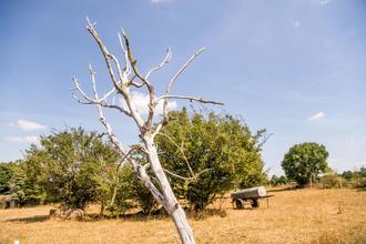Abgestorbener Baum auf landwirtschaftlicher Fläche nach langanhaltender Hitze und Dürre (Quelle: © Maximilian von Lachner)