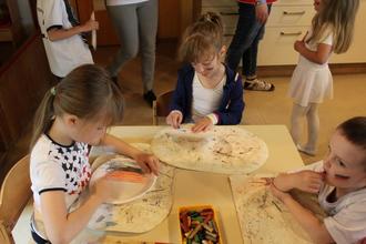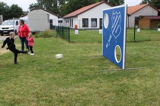 Die Kinder, die wollten, wurden dann noch mit einer Deutschland Flagge auf der Wange verziert und danach ging es in die einzelnen Gruppen zurück. Dort wurde Musik gehört, Spiele gespielt, Deutschland Armbänder gefädelt, Handabdrücke in schwarz-rot-gold gemacht, Girlanden und Hüte gebastelt und es fand ein Torwandschießen auf dem Sportplatz statt.