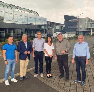 Beim anschließenden Rundgang durch das Gewerbegebiet „Im Rohr“ stattete der Regierungspräsident auch einen Besuch bei der Fa. Hupfeld & Schlöffel Metallbau GmbH ab. Die Firmenleitung in Gestalt von drei Generationen, Eduard Schlöffel, Bettina Schlöffel und Dennis Schindewolf, stellten das Unternehmen aber auch strukturelle Probleme für Gewerbetreibende vor.