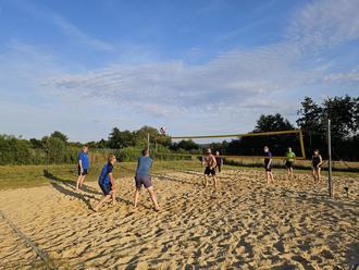 Zur Verabschiedung nahmen Gudrun und Sabrina als Vertreterinnen des Vorstands teil. Während einige der Männer sich um das Grillen kümmerten, spielten andere zusammen mit drei Gastspielern auf dem Beachvolleyballplatz am Nordufer des Meinhard-Sees. Es war eine Freude, dem leidenschaftlichen Körpereinsatz und den beeindruckenden Spielzügen zuzusehen.