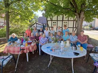Die recht große „Kaffeerunde“ der Frankenhainer Seniorinnen auf dem Anger