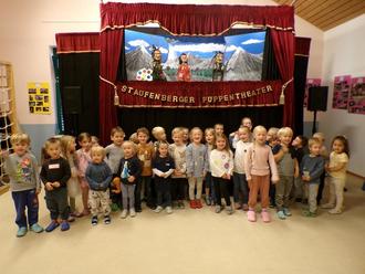 Am Montag, den 22. September, hatten wir ein ganz besonders Highlight in der Kita. Anlässlich des Weltkindertages war das Staufenberger Puppentheater zu Gast und spielte für unsere Kinder (je nach Alter) eine Geschichte. Für die „kleinsten“ wurde das Stück „Tiere im Wald“ und für die „älteren“ Kinder die Geschichte „die kleine Hexe“, die unbedingt ihre Hexenprüfung bestehen wollte, gespielt.
