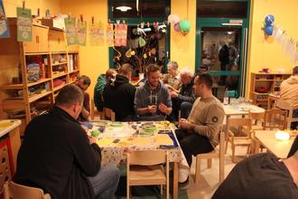 Seit letztem Monat bereiten wir uns auf unser Laternenfest vor. Neben der Geschichte von St. Martin und dem Erlernen neuer schöner Laternenlieder wurden bei den Waldzwergen auch fleißig kleine „Martinsmännchen“ gebacken. Damit unsere Lichter auch dieses Jahr hell erleuchten, fanden drei Bastelabende statt, zu denen dieses Jahr alle Väter, Opa´s, Onkels und Paten eingeladen waren, um für die Kinder schöne Laternen zu basteln. Diese Abende waren gut besucht und wir haben uns sehr über die rege Teilnehme gefreut.