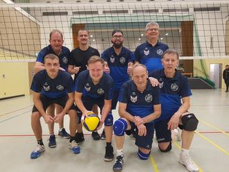 Mit dem knappsten aller möglichen Ergebnisse (18:16) konnten die „Blau-Weißen“ Volleyballer gegen die VGE (Volleyball Gemeinschaft Eschwege) die Oberhand behalten. Dafür waren aber drei Sätze notwendig. Aber dank des konzentrierten und aggressiven Einsatzes unserer „jungen Wilden“, insbesondere der Hauptangreifer Jonas Bausch und Leon Zindel konnte das Spiel noch gedreht werden. Auch Jonas‘ Bruder Leo, extra aus München eingeflogen, zeigte eine souveräne und technisch perfekte Leistung. Der unbedingte Einsatzwille von Julius Cassel und der erfahrenen Oldies Lothar Schindewolf und Jürgen Fuchs gab dann in vielen Spielsituationen den Ausschlag. Die variantenreich und technisch perfekt spielenden Eschweger, besonders auch deren junge Frauen, holten immer wieder „verlorene“ Bälle ins Spiel, blockten nach Lehrbuchart, und waren in der Spiel-Abstimmung perfekt einstudiert. Also gegen diese VGE zu gewinnen war eine große Leistung.