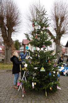 Alle Kinder und Eltern sind dazu eingeladen, mit uns gemeinsam zu singen und den gebastelten Baumschmuck aufzuhängen.