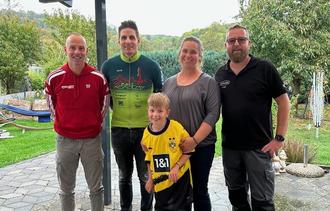 Joshis Freude war riesengroß als Markus Brill und Timo Fink, Vorstandsprecher der TSG Kammerbach, ihm Mitte Oktober sein Trikot mit den besten Grüßen von Marco Reuß und Michael Rummenigge überreichen durften.