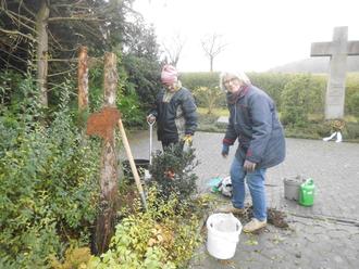 Anpflanzung der gespendeten Sträucher auf dem Frankenhainer Friedhof