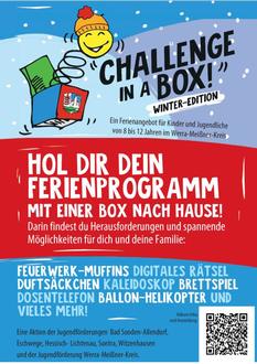 Challenge in a box ist eine gemeinsame Ferienaktion der Jugendförderungen Bad Sooden-Allendorf, Hessisch Lichtenau, Eschwege, Sontra und Witzenhausen und der Jugendförderung des Werra-Meißner-Kreises.