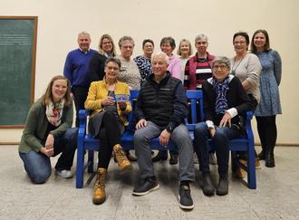 Herr Wüstefeld war zur Bankübergabe angereist mit seiner Kollegin Frau Hesse. Und nachdem das obligatorische Foto mit der kleinen blauen Bank auf der großen blauen Bank im Kasten war, haben wir bei Kaltgetränken, Punsch und Tee, sowie Leckereien noch eine Weile bei guten Gesprächen zusammengestanden.