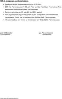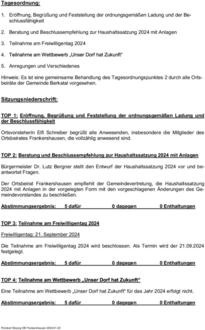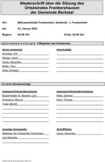 Der Ortsbeirat Frankershausen empfiehlt der Gemeindevertretung, die Haushaltssatzung 2024 mit Anlagen in der vorgelegten Form mit den vorgeschlagenen Änderungen des Gemeindevorstandes zu beschließen.
