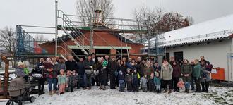 Die Kindertagesstätte Wacholderzwerge hier in Berkatal erhält bereits den dritten Anbau. Seit August diesen Jahres ist der Anbau in der ausführenden Bauphase. Das Mauerwerk ist nunmehr errichtet, der Dachstuhl ist gerichtet - dieser wichtige Meilenstein beim Bau eines Gebäudes wurde am vergangenen Freitag mit einem Richtfest gefeiert. Neben Mitgliedern der Gemeindevertretung und des Gemeindevorstands konnten Bürgermeister Dr. Lutz Bergner und die Leiterin Saskia Flügel auch Vertreter der Eltern und einige Kinder der Tagesstätte begrüßen.