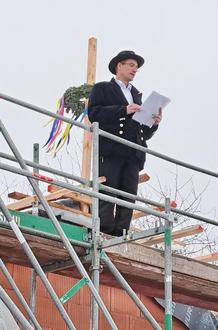 Zimmermannsmeister Matthias Kaulich spricht den Richtspruch