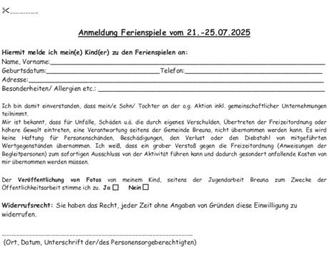 | Anmeldeschluss: | Donnerstag, 26.06.2025 (max. Teilnehmerzahl = 45 Kinder) |