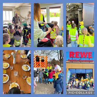 Mit großem Interesse tauchten die Kinder in die verschiedenen Berufswelten ein und durften in allen Betrieben einmal hinter die Kulissen schauen, ausprobieren, Fragen stellen und lernen. In der Kita wurden dann jeweils Spielecken passend zum jeweiligen Beruf eingerichtet und die Kinder konnten selbst Verkäufer, Koch, Frisör usw. spielen.
