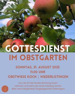 | 11 Uhr | Kirchspiel-Gottesdienst an einem besonderen Ort: Obstwiese von Gerhard Koch in Niederlistingen |