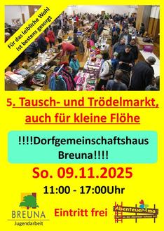 Wir freuen uns auf viele Begegnungen, spannende Stände und einen gelungenen Flohmarkt im Dorfgemeinschaftshaus Breuna!