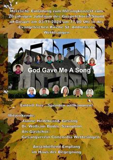 17.00 Uhr Gottesdienst und Mitsingkonzert zum 20jährigen Jubiläum des Gospelchores in Wettesingen