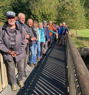 Unsere letzte Wanderung im Oktober führte uns nach Germete und den Schmetterlingssteig. Bei schönem Herbstwetter ging es in Germete vom Wanderparkplatz an der Diemel entlang des neuen renaturierten Teils des Flusses in Richtung Heinturm. Der kurze, aber steile Anstieg dorthin, ließ die ersten Schweißperlen fließen.