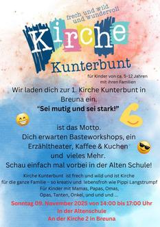Breuna: | 14.00 Uhr | Kirche Kunterbunt – in der „Alten Schule |