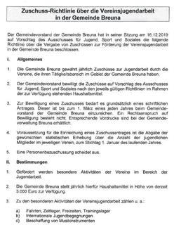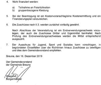 Anträge auf Förderung der Vereinsjugendarbeit bei der Gemeinde Breuna können ab sofort geltend gemacht werden. Zur Berücksichtigung bei der Vergabe der Fördermittel wurden Vereinsvorsitzende in der Gemeinde Breuna angeschrieben und zur Antragsabgabe bis zum 1. März 2025 aufgefordert.
