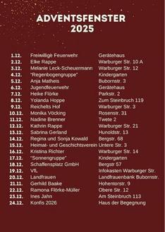| 17:00 Uhr | Weihnachtsliedersingen in Breuna, mit Posaunenchor |