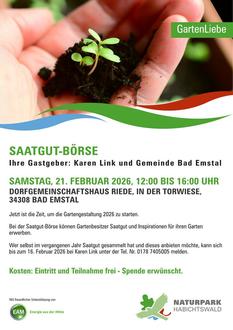 „Jetzt ist eine optimale Zeit, um mit der Gartenplanung zu beginnen und die ersten Pflänzchen vorzuziehen“, so die Bad Emstaler Gärtnermeisterin Karen Link. Gemeinsam mit ihrem Team und der Gemeinde Bad Emstal lädt sie deshalb am Samstag, den 21. Februar 2026 von 12 bis 16 Uhr zur Saatgut-Börse in das Dorfgemeinschaftshaus Riede, In der Torwiese, ein.