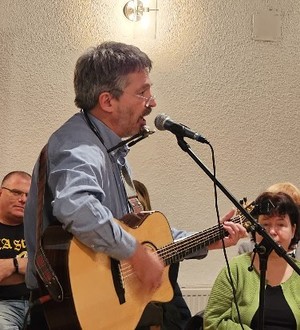 Volker Böhm sorgte mit seiner Gitarre und englischen Liedern für modernere Klänge. Er spielte die bekannten Popsongs „Can´t help falling in Love“ von Elvis Presley, „The River“ von Bruce Springsteen, „Let her go“ von Passenger wie auch den bekannten Weihnachtshit „Winter Wonderland“.