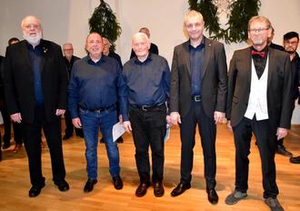 Nach dem Intro des gastgebenden Vereines und Ihres Vorsitzenden Dr. Frank Sauerwald wurden die Sänger des MGV Cölbe Horst Sauerwald (50 Jahre aktives Singen) und Dieter Löchel ( 40 Jahre aktives Singen) für ihre langjährige Aktivität im Verein vom Präsidenten des kurhessischen Sängerbundes Erich Stingel geehrt. (siehe unteres Foto)