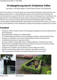 Das Protokoll zur Ortsbegehung ist als Anlage beigefügt.