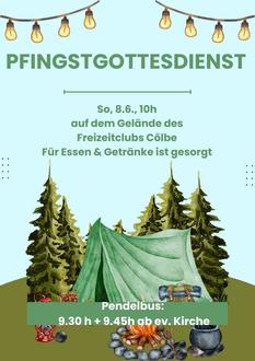 Zum Pfingstgottesdienst unter freiem Himmel lädt die evangelisch-lutherische Kirchengemeinde Cölbe am Sonntag, 8. Juni um 10 Uhr ein. Der Gottesdienst findet auf dem Gelände des Freizeitclubs Cölbe statt, für Getränke und Speisen im Anschluss ist gesorgt. Wer eine Mitfahrgelegenheit braucht, kann um 9.30 Uhr und um 9.45 Uhr an der evangelischen Kirche zusteigen.